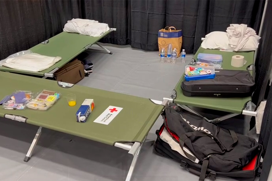 Также туда прилетели российские журналисты — их разместили на спортивной арене хоккейного клуба «Морские волки» в «импровизированных апартаментах», передает корреспондент РБК.