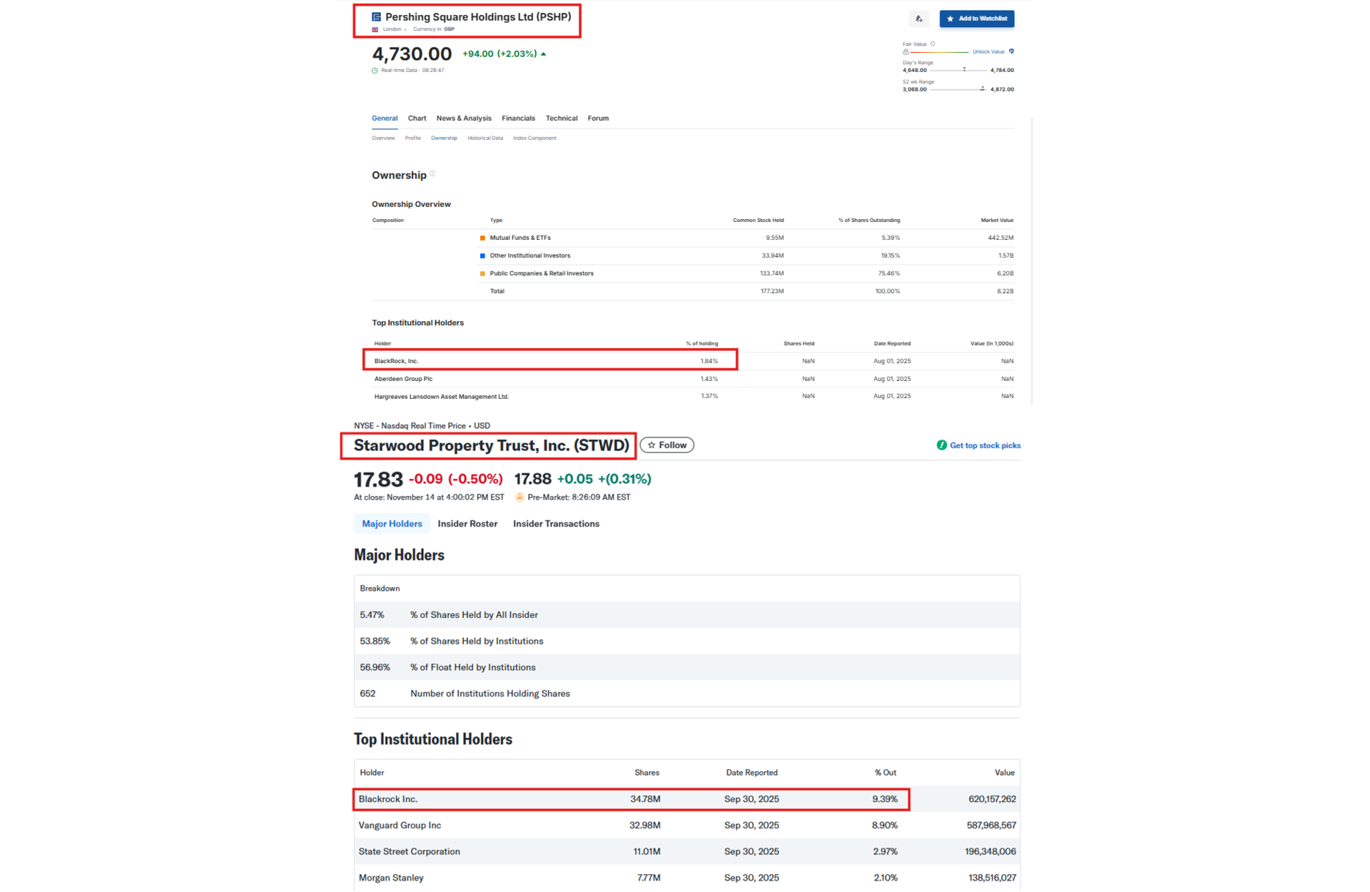 Зашёл BlackRock и в капитал других фондов, участвующих в переговорах с руководством Украины, — Pershing Square и Starwood Property. И если в первом случае речь идёт о 2%-ной доле, то во втором фонде «Чёрная скала» стала крупнейшим держателем свободных акций — 9,39%. Мало того, BlackRock получил в своё управление «портфель ценных бумаг» Starwood и её денежные средства, то есть фактически контролирует его.